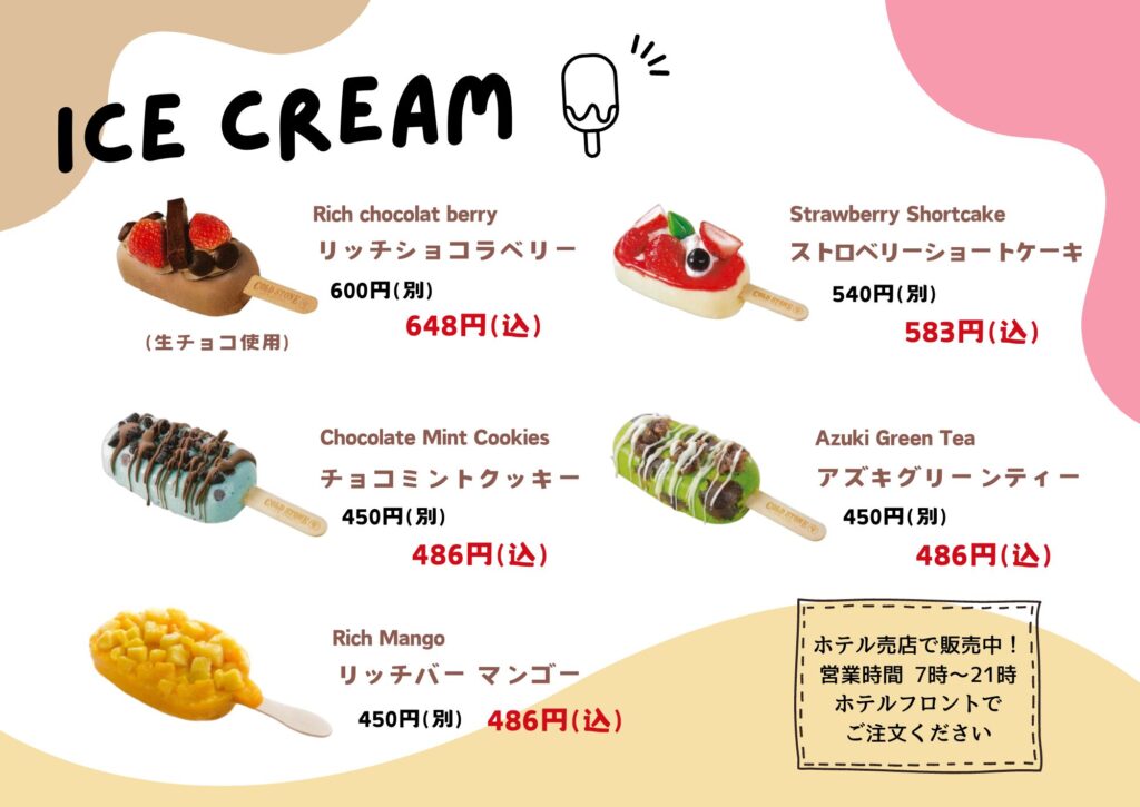 この度ホテル売店にてアイスクリームの販売を開始いたしました。