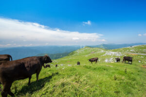 愛媛県と高知県にまたがる尾根沿いに広がる「四国カルスト」。白い石灰岩がヒツジの群れのように見えるカレンフェルトやすり鉢型の窪地ドリーネなど、カルスト特