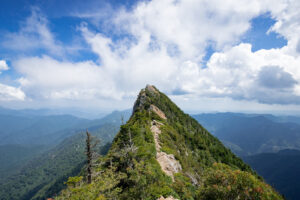 愛媛県西条市と久万高原町の境界に位置する標高1,982mの「石鎚山」、西日本で一番高い山。山岳信仰の山として知られており、日本でも珍しいお遍路の通り道