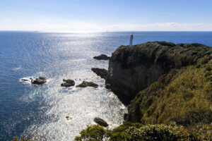 足摺岬灯台周辺には様々な特産品が味わえることも魅力の1つ 足摺岬の断崖に反りたつ白亜の灯台は高さ18m、光度200万カンデラ、光達距離38kmと日本で